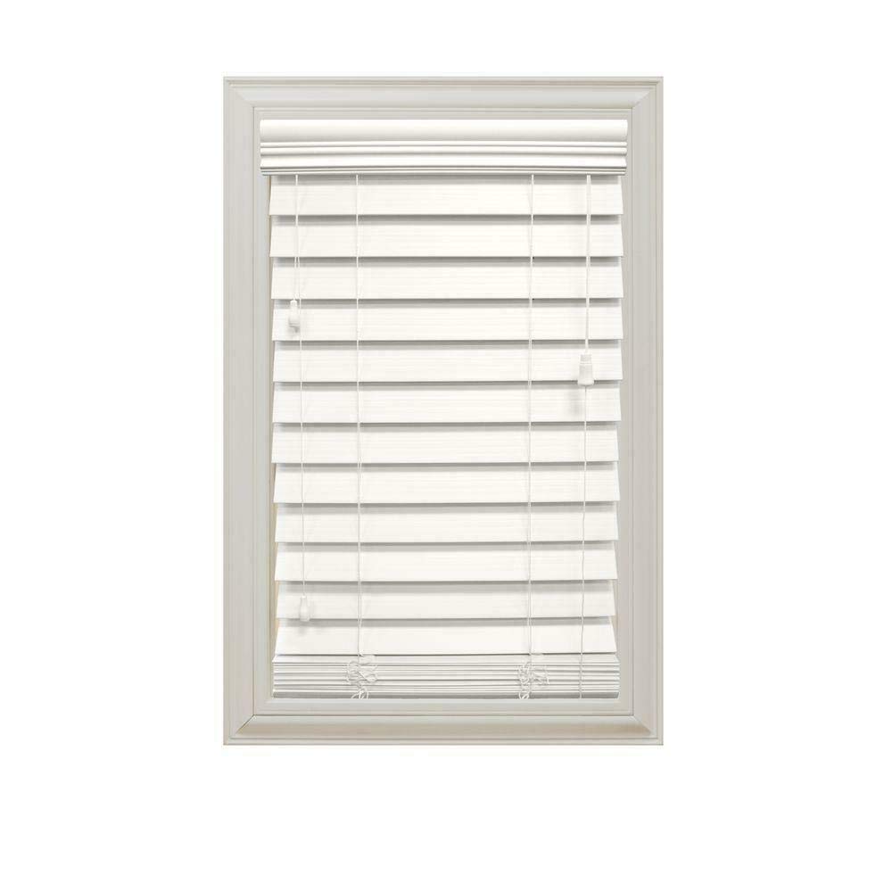Home Decorators Collection White Cordless 2 1 2 In Premium Faux Wood Blind 34 5 In W X 64 In L Actual 34 Premium Faux Wood Blinds Blinds Faux Wood Blinds